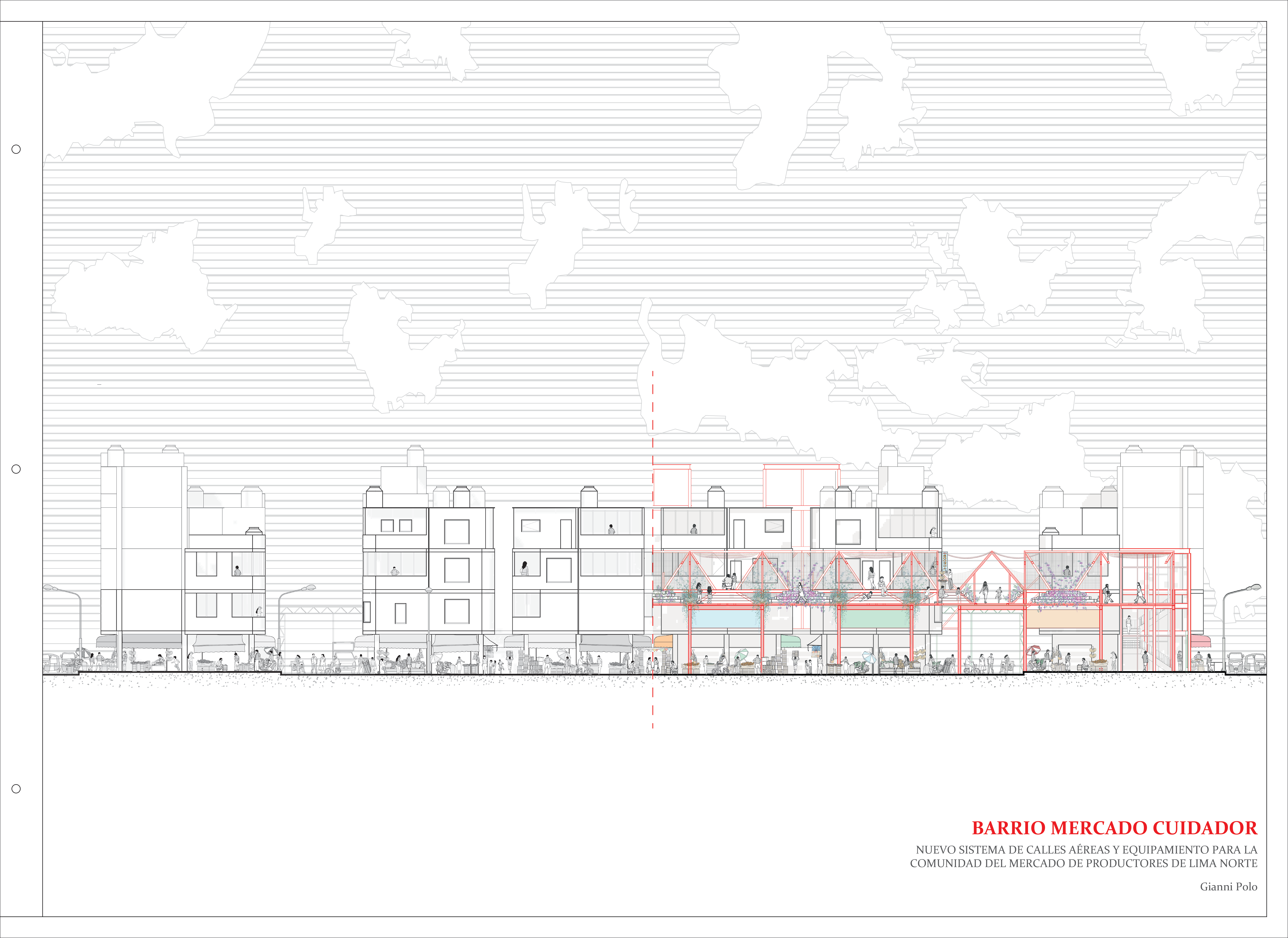 Los mercados son infraestructuras urbanas esenciales en la vida social y económica de Lima; más allá de su función comercial, sirven como centros de reunión comunitaria y organización vecinal. Sin embargo, su naturaleza monofuncional limita su uso, convirtiéndolos en espacios inseguros y vacíos por la noche. Este problema se agrava en una ciudad altamente sísmica donde casi el 70% de los edificios son de construcción propia, lo que provoca problemas de accesibilidad, chabolismo y escasa habitabilidad.