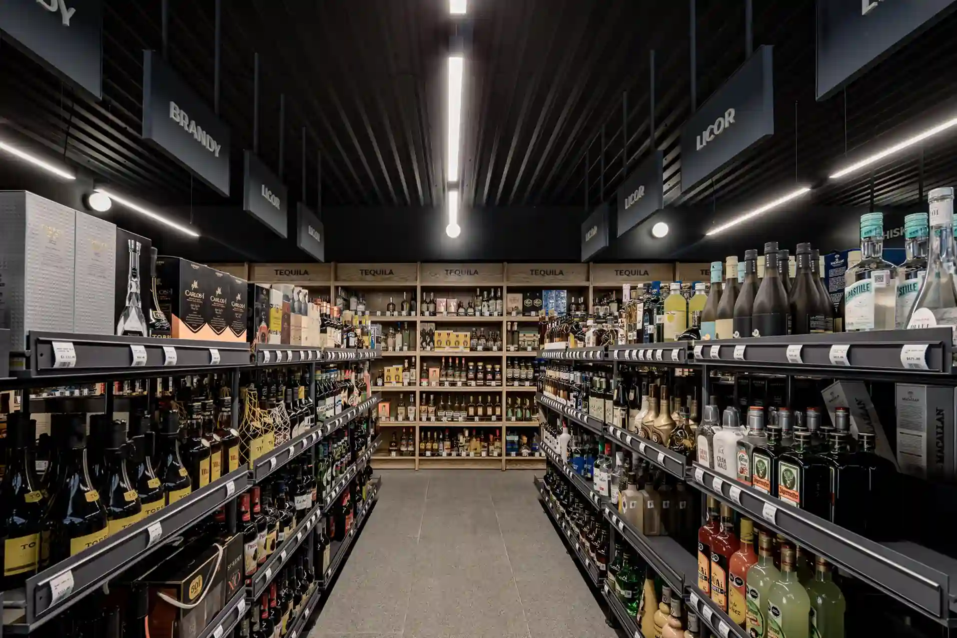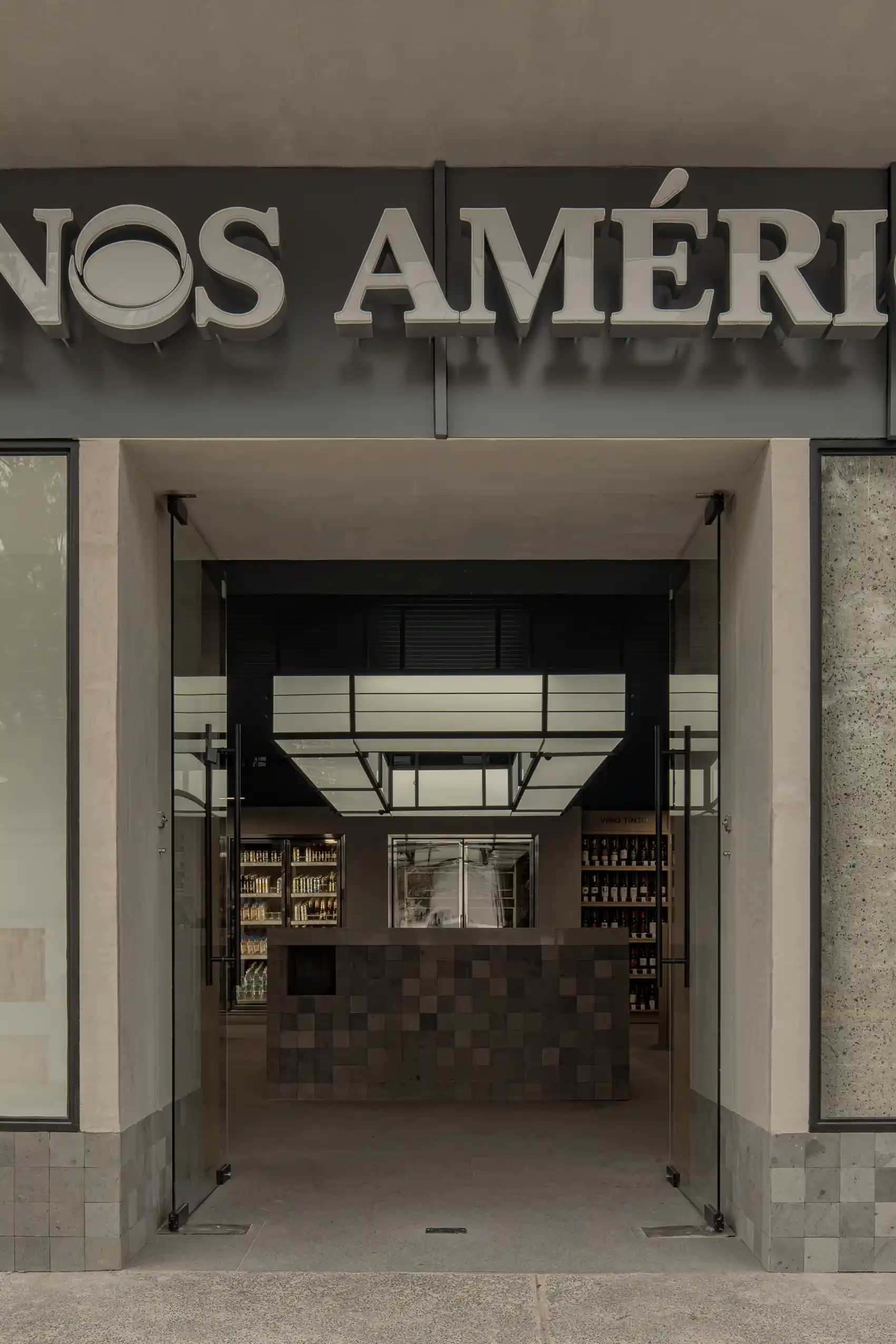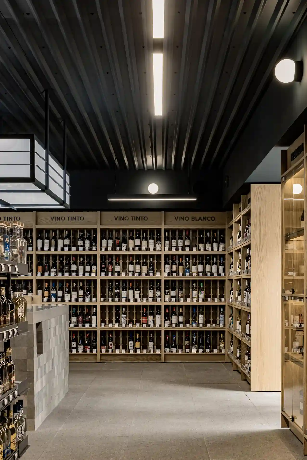 What sets Vinos América apart is its wide variety of labels, along with an extensive range of spirits and liquors; therefore, the strategic arrangement of diverse products was crucial. This goal was achieved by using furniture made of both wood and steel, surrounding the central bar, evoking echoes of the lightboxes traditionally employed in American diners.